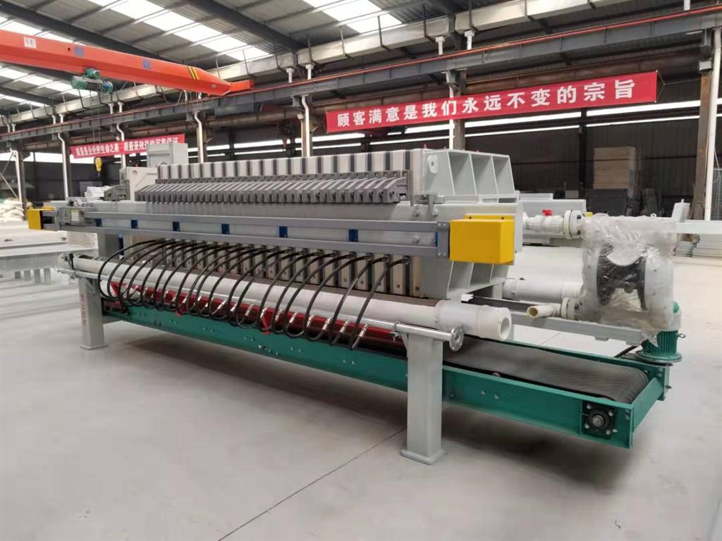 水分配管連接至煤泥壓濾機上方的兩個入口法蘭,從而使濾液進入煤泥壓濾機濾板上方的兩個分配管,并且分配管被濾板一一擠壓。 壓接在一起,并且在每個濾板的均勻方向上的一側(cè),有一個通向濾板中心凹口的通道或凹槽。 這樣,來自濾板分配管的濾液被分成由濾板和板框組成的濾室。 實際上,土工膜制造商流入了由兩塊濾布包裹的板框。 當與濾布接觸時,在強烈的壓力趨勢下,過濾器中的液體也會通過濾布。 濾布僅允許液體通過,而固體被攔截并存儲在過濾室中。